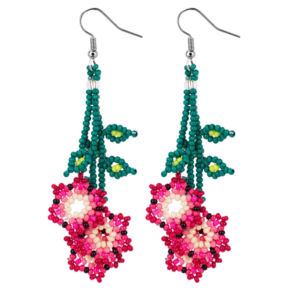 Drop Earring Trailing Flowers Made With Bead