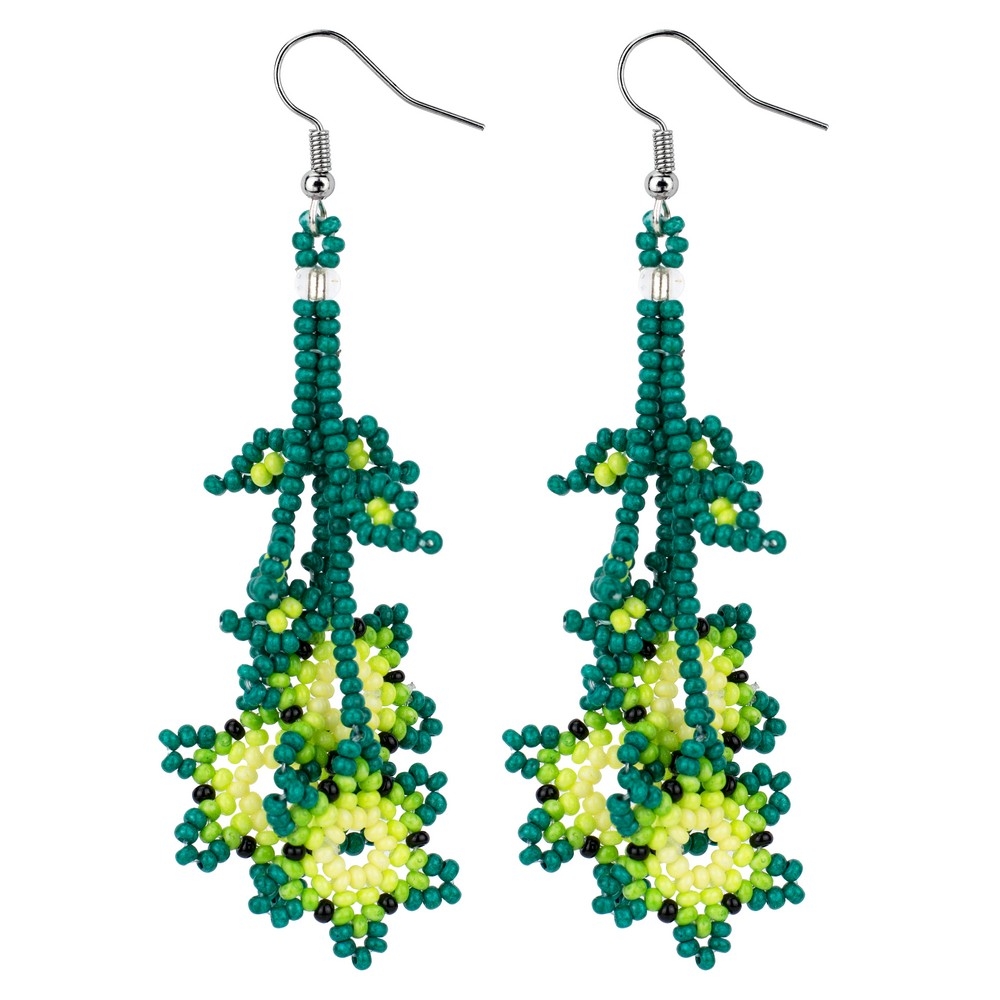 Drop Earring Trailing Flowers Made With Bead