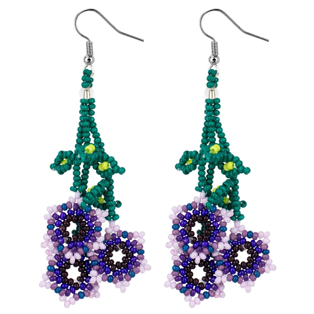 Drop Earring Trailing Flowers Made With Bead