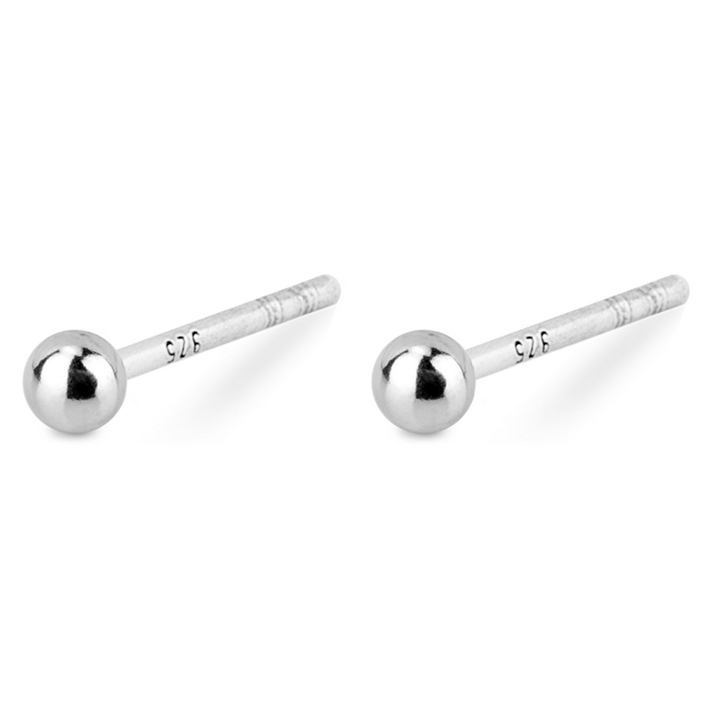 Stud Earring Simple 2 Mm Ball Made With 925 Silver