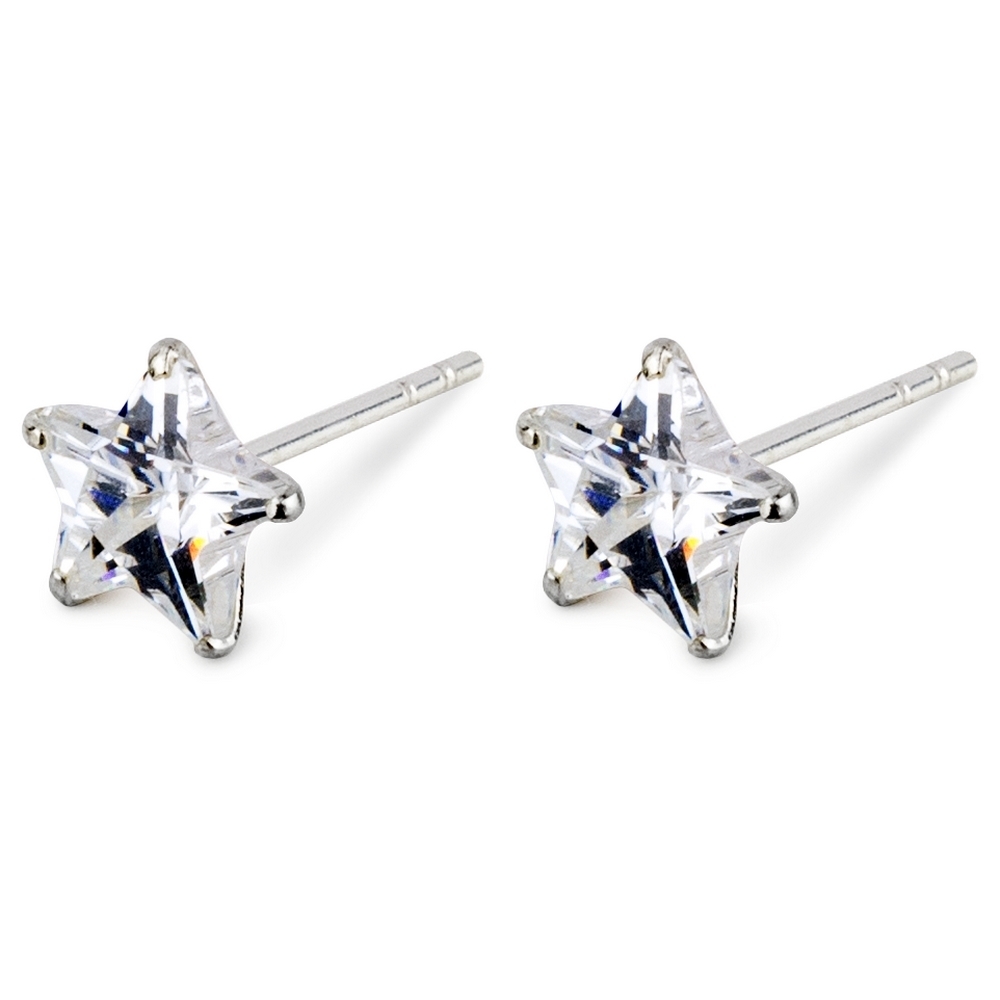 Stud Earring Star Made With 925 Silver & Crystal Glass