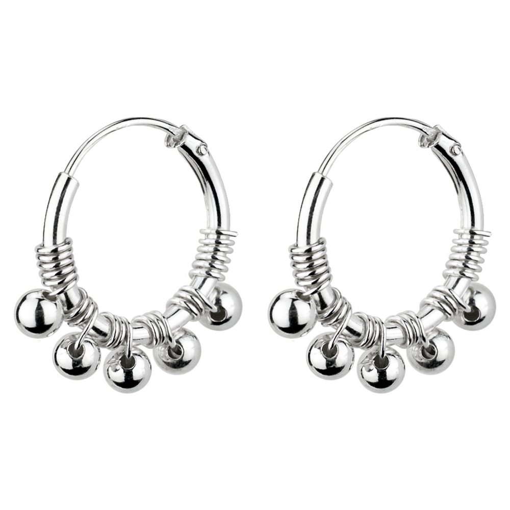 Hoop Earring 5 Ball Bead Made With 925 Silver