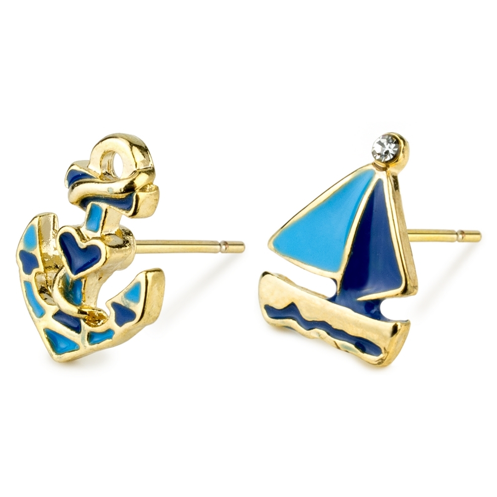 Stud earring boat & anchor navy blue
