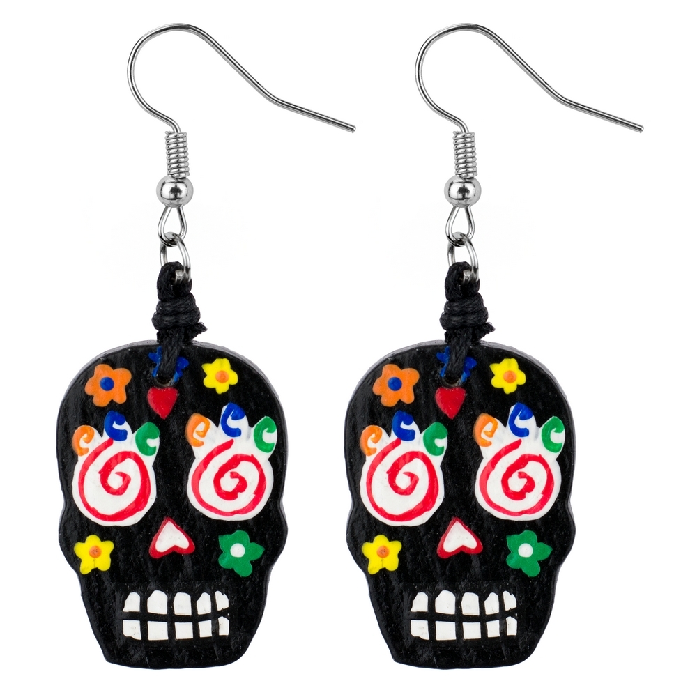 Drop Earring Day Of The Dead Swirl Made With Wood