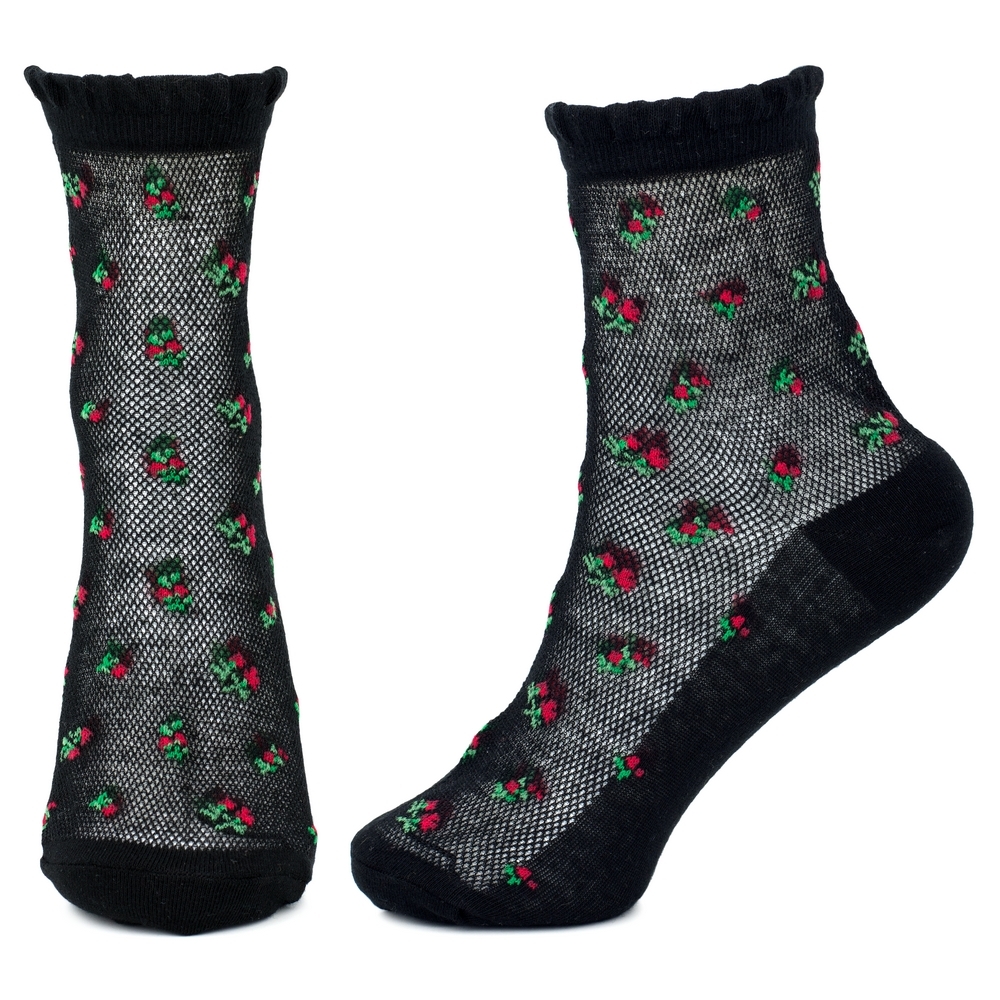 Socks cotton & spandex french flower black