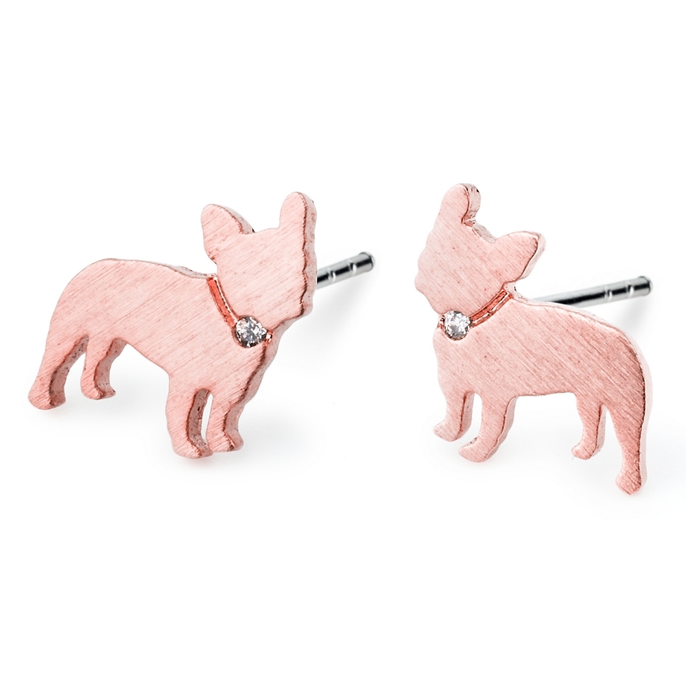 Be the first to review “Stud earring crystal glass french bulldog rose gold”