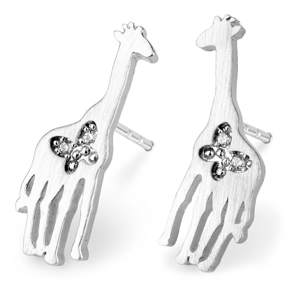 Stud earring crystal glass giraffe silver