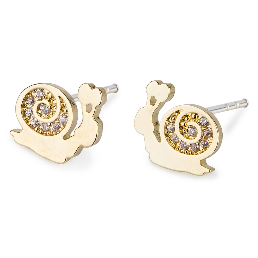Stud earring crystal glass snail gold
