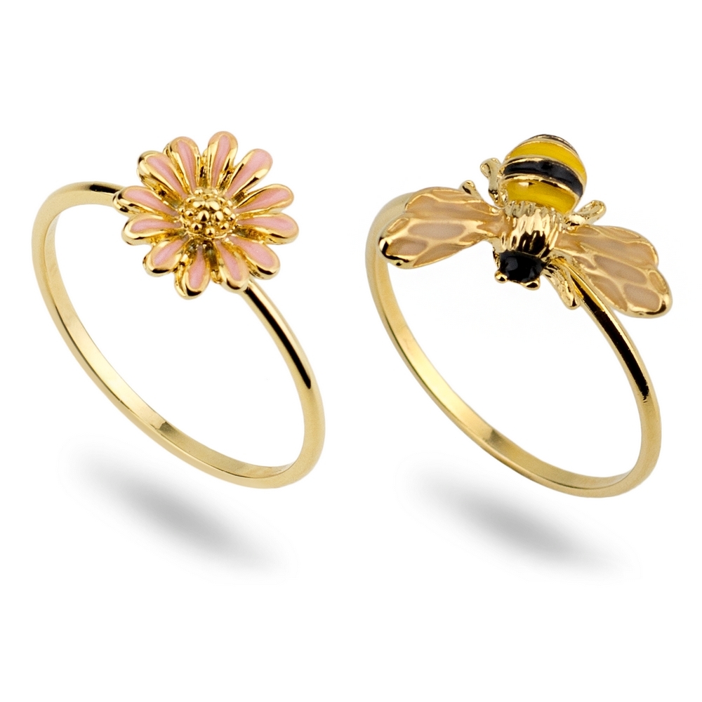 A delightful pair of stacking rings which put the bee on the flower. Both pieces are delicately detailed and carefully enamelled, a tableau vivant to catch the attention and entrance. Wear them on the same finger, different fingers, different hands or gift one as a confirmation of freindship.