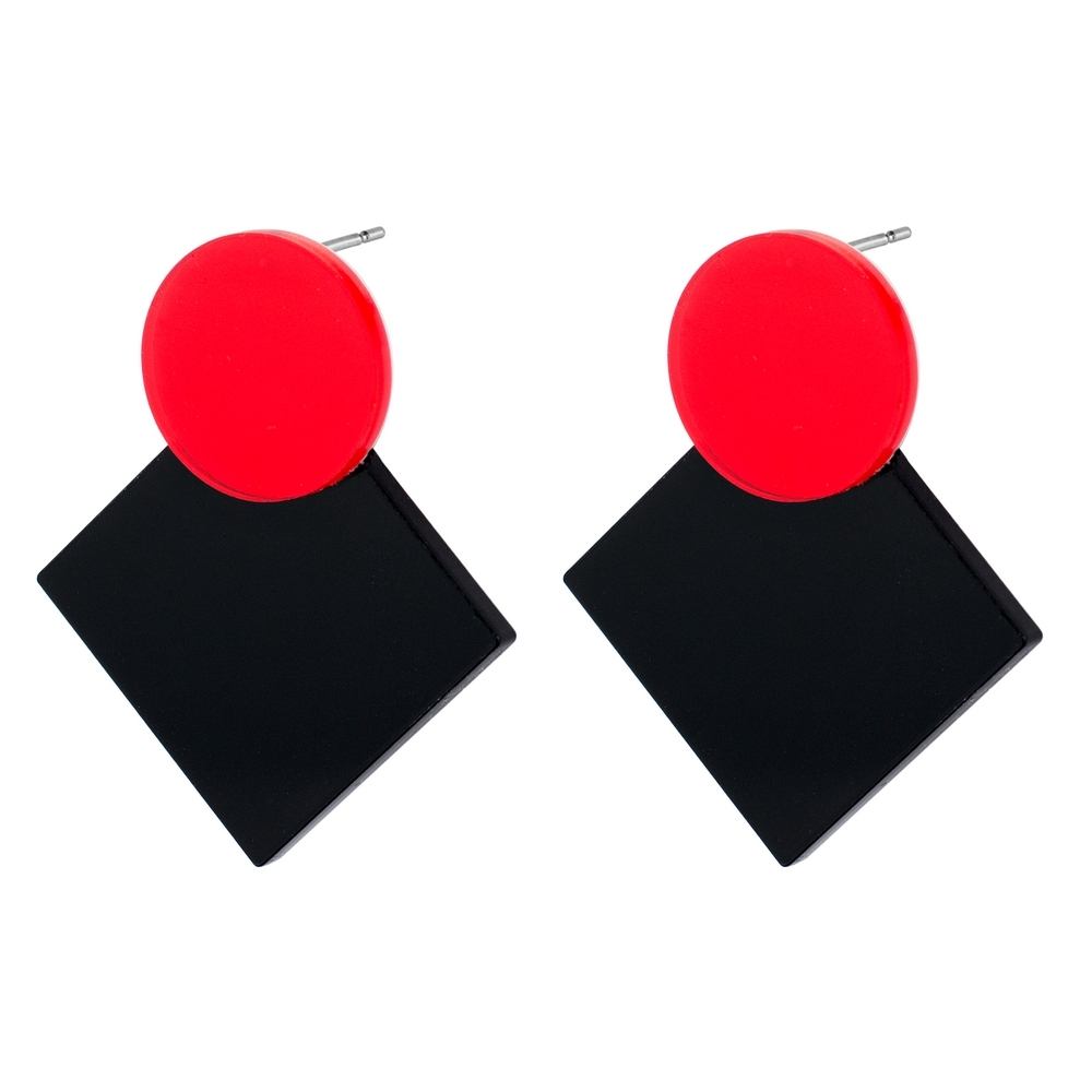 Stud earring acrylic disc with square black