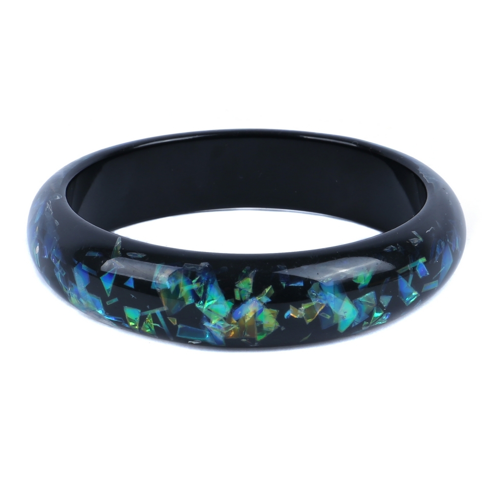 A Styling Moment: Imagine this bangle adorning a linen-clad wrist, paired with a crisp white shirt and tailored shorts for a leisurely afternoon by the coast. Or let it lend an unexpected, artistic flourish to a minimalist black dress, its vibrant depths providing a focal point of intriguing colour. It’s a piece that thrives when allowed to speak for itself, perhaps alongside a simple gold chain or a delicate watch.