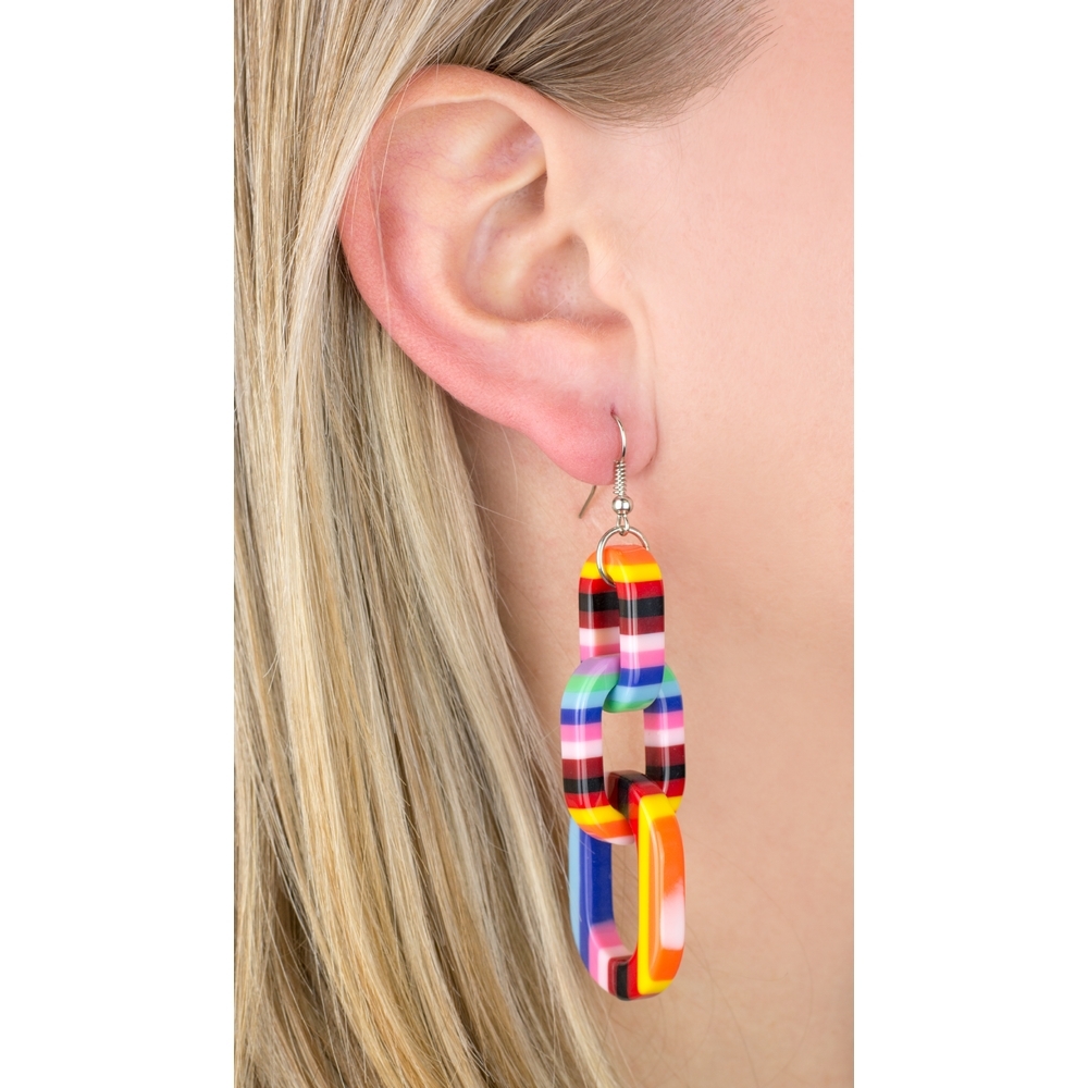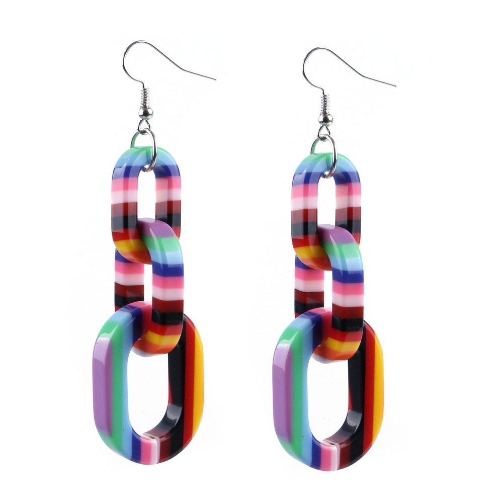 Drop Earring Colour Stripe Graduated Links Made With Acrylic