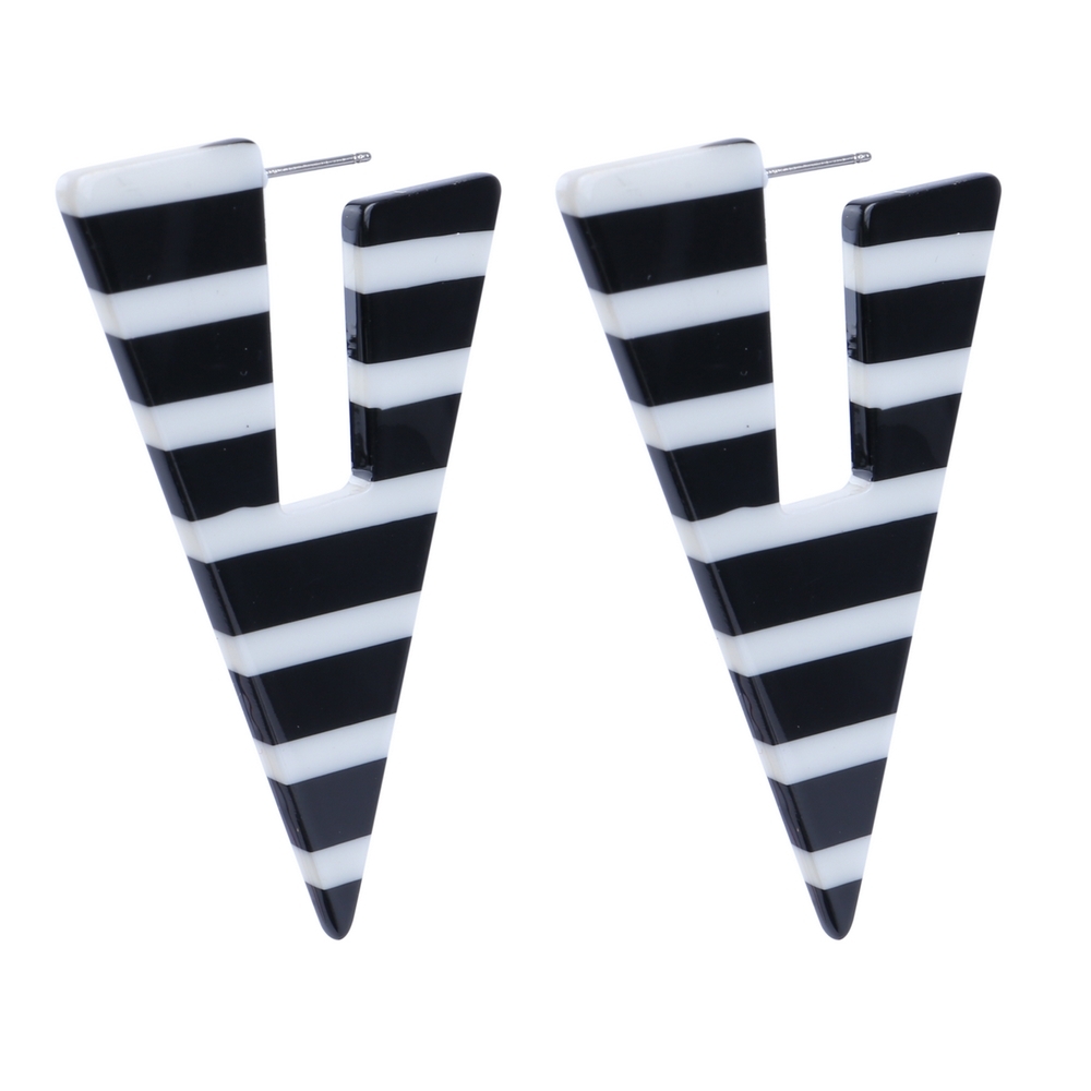 Drop earring cellulose large shape striped triangle black & white