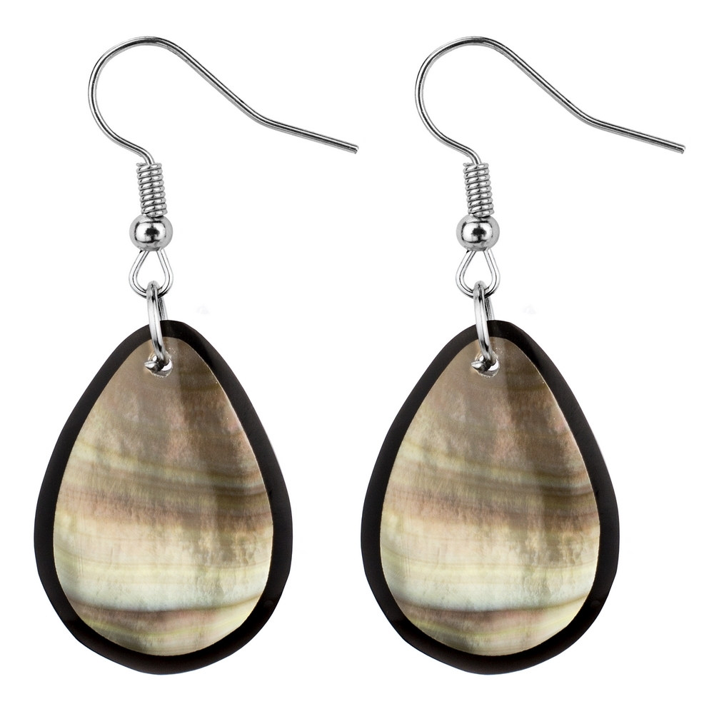 Drop Earring Inlay Oval Mother Of Pearl Made With Resin & Shell