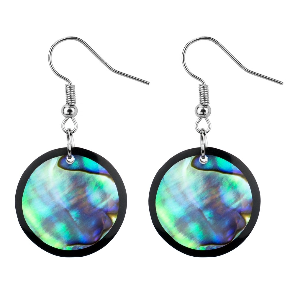Drop Earring Inlay Round Paua Made With Resin & Shell