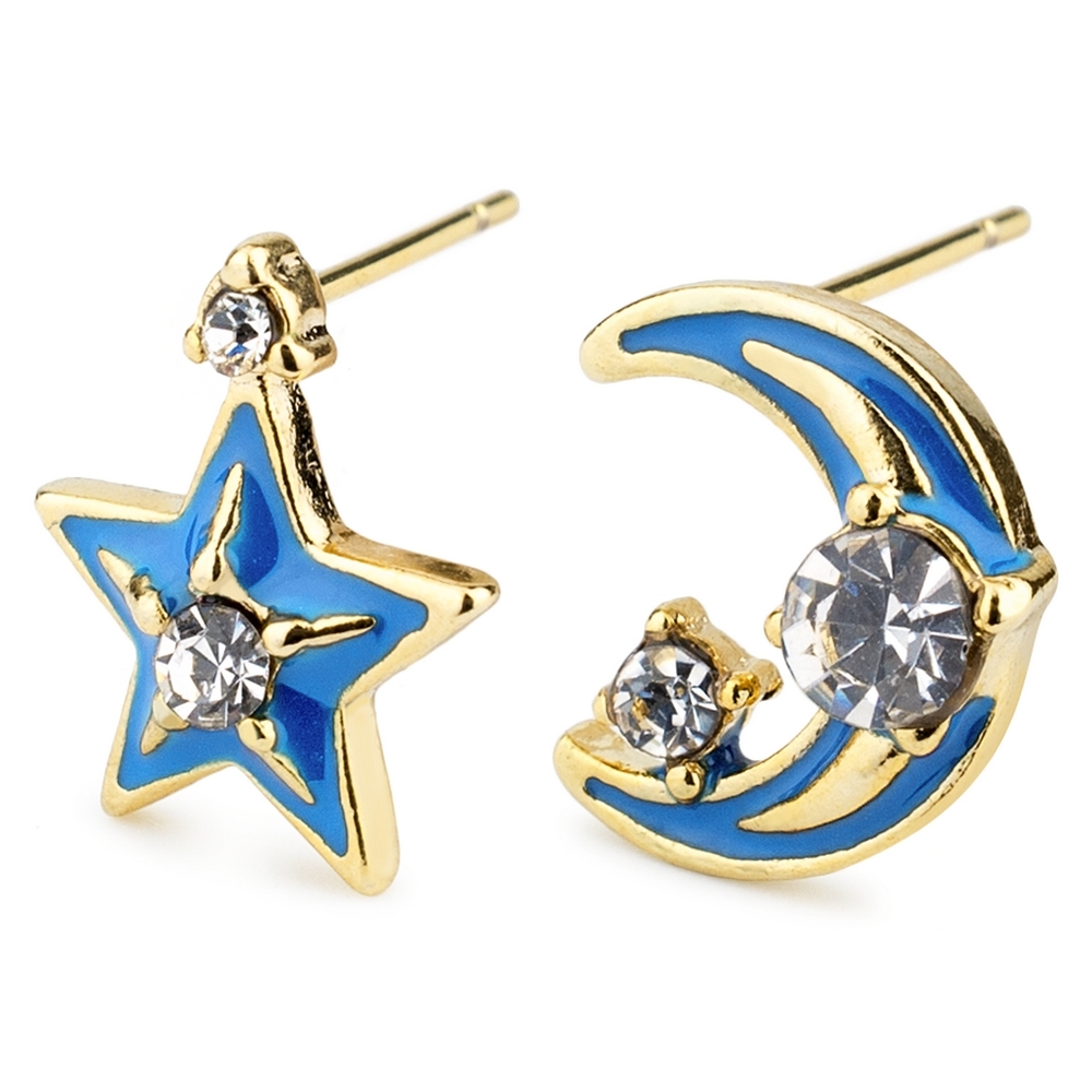 Stud earring cubic zirconium moon and star blue