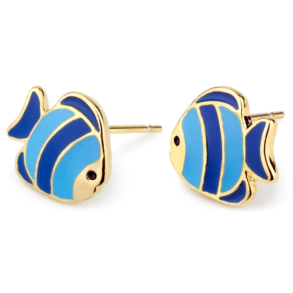 Stud earring enamel clown fish blue