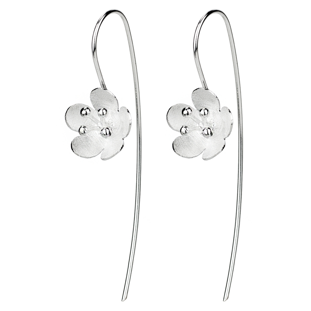 Drop Earring Long Stem 5 Petal Flower Made With 925 Silver