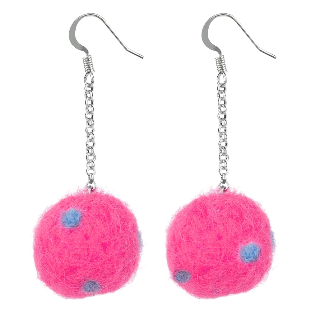 Drop Earring Polka Pompom Single Chain Made With Felt