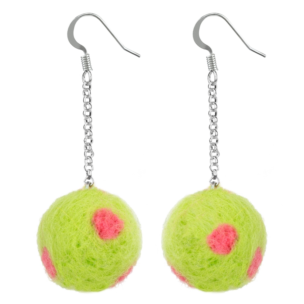Drop Earring Polka Pompom Single Chain Made With Felt