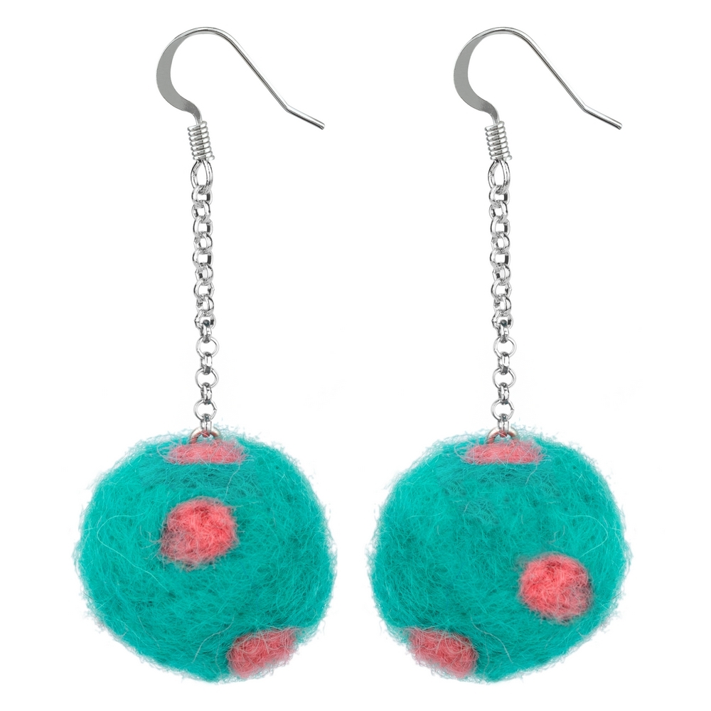 Drop Earring Polka Pompom Single Chain Made With Felt