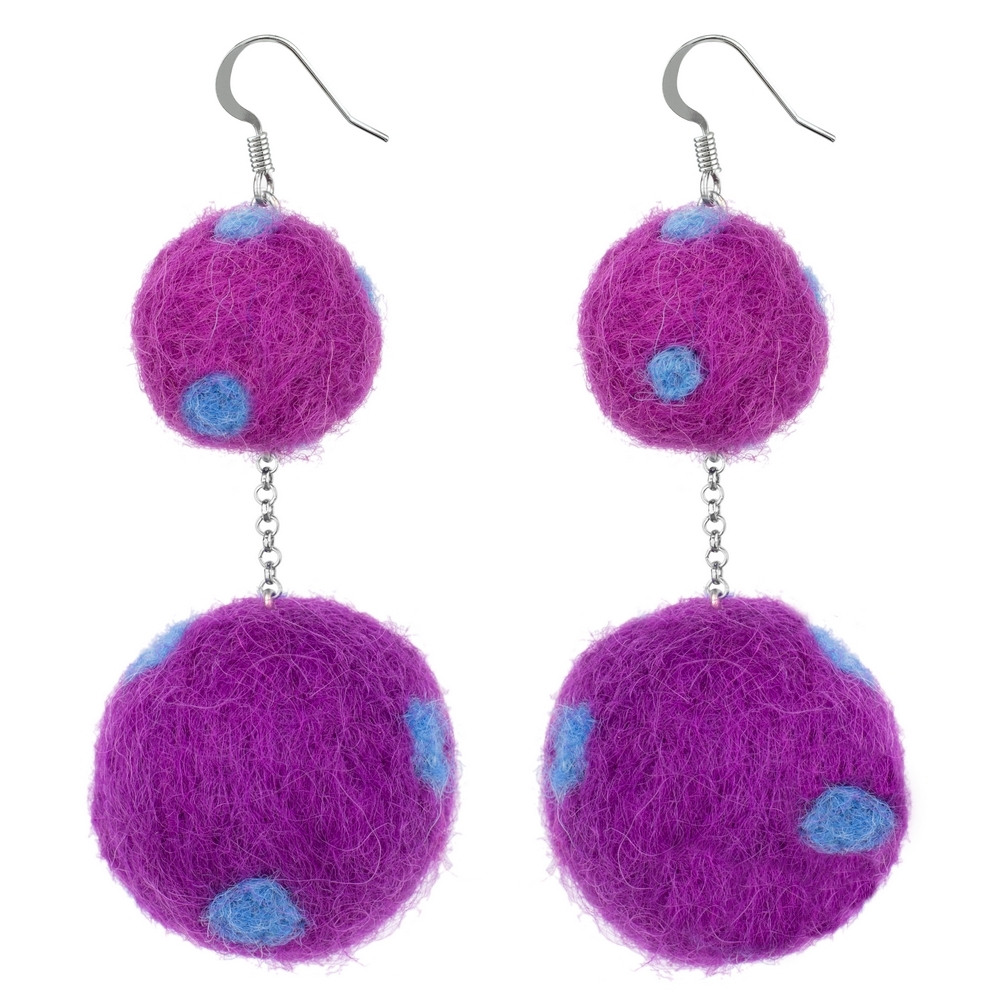 Drop Earring Polka Pompom Double Made With Felt