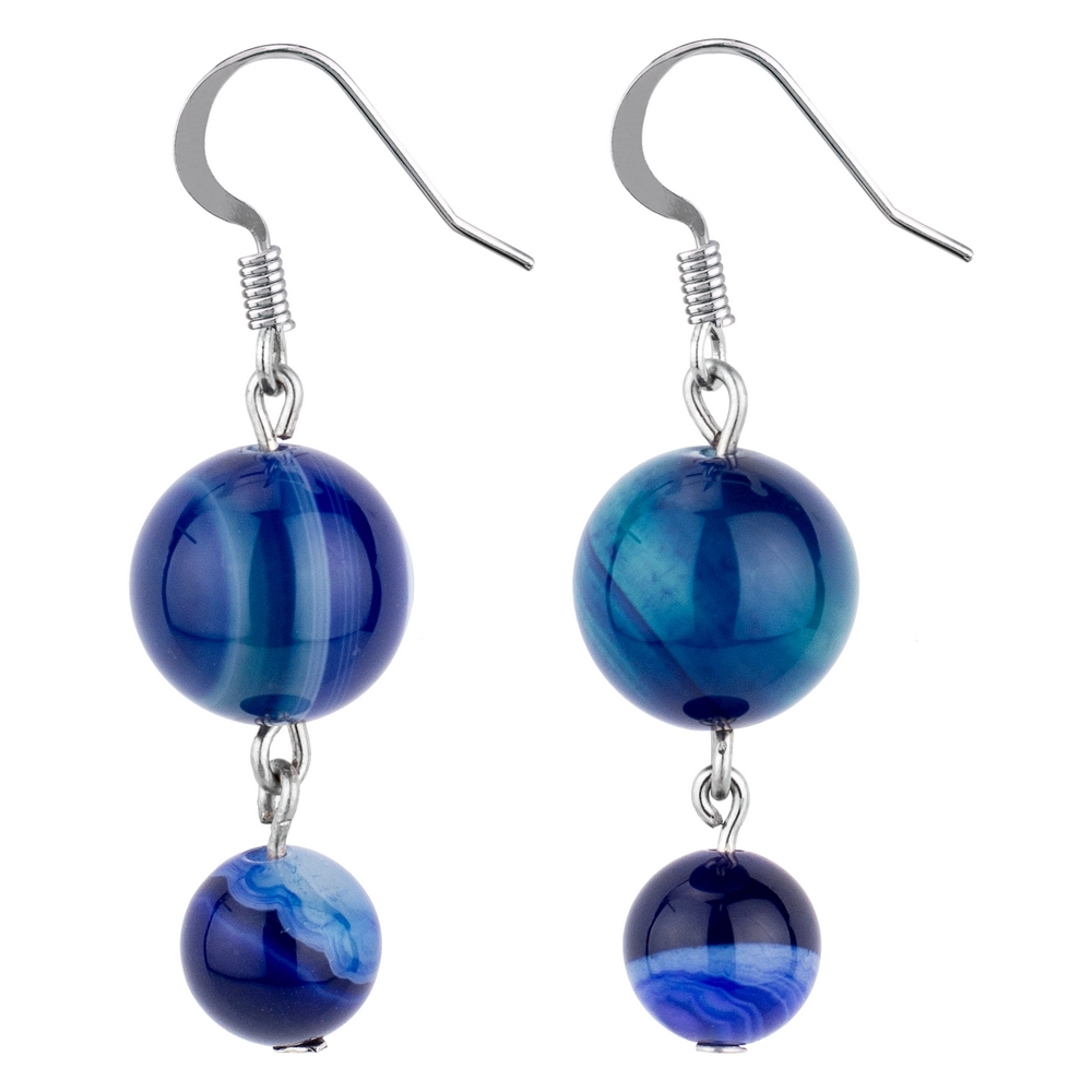 Drop earring agate night sky double marbles blue
