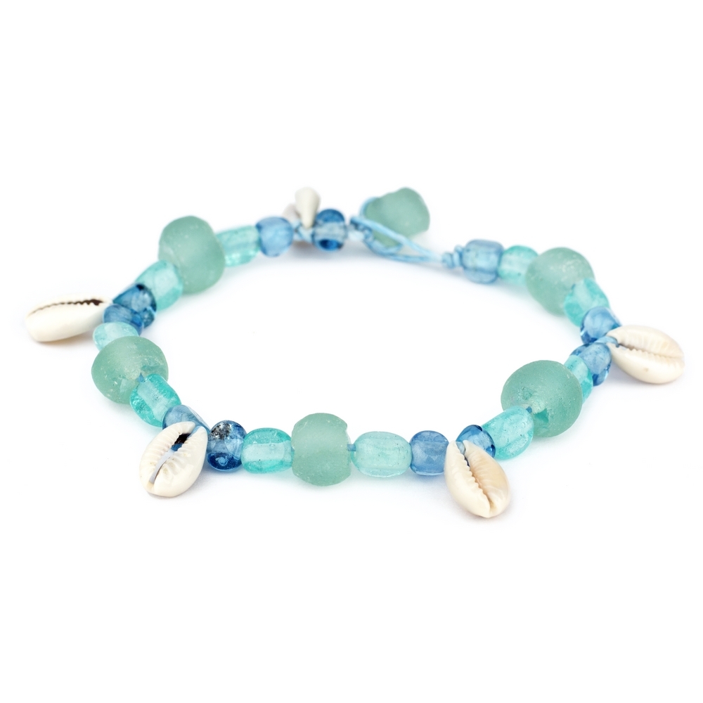 Each piece is a thoughtful composition of naturally tumbled sea glass, its edges softened by the tide, paired with the timeless elegance of a cowrie shell. The subtle iridescence of the shell catches the light, while the cool, smooth surface of the glass offers a grounding touch. Strung with an understated bamboo-effect element, the design feels inherently organic and authentic, a testament to the raw artistry of the natural world.