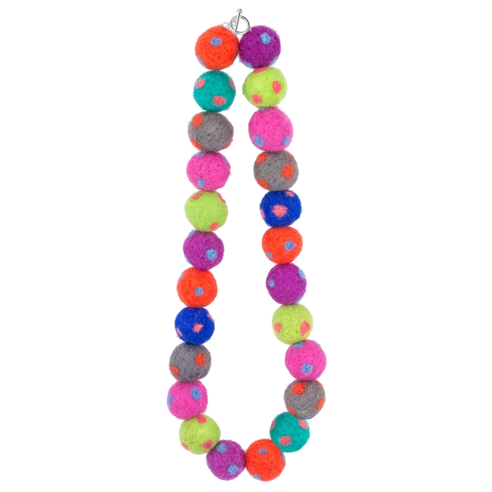 Necklace felt polka pompom multicoloured