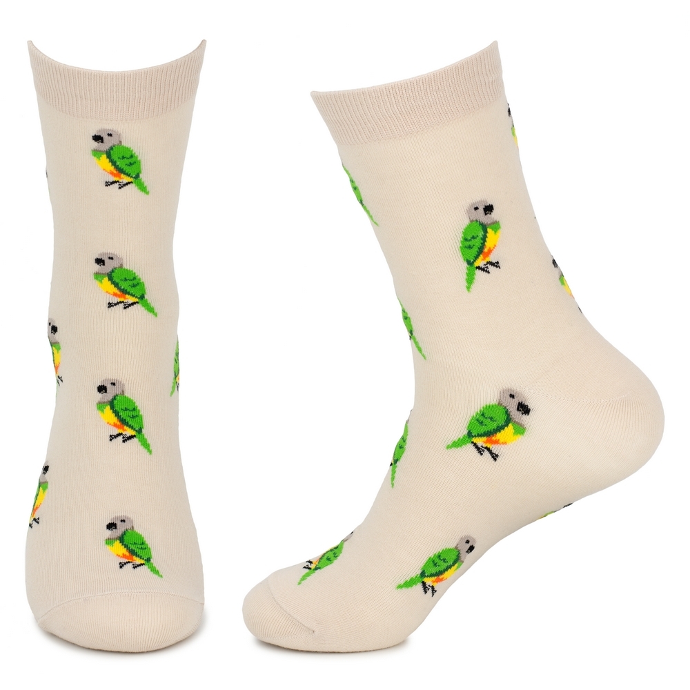 Let your customers’ style take flight with our popular parrot flock socks. The detailed and colourful parrot design against a neutral beige background makes these socks a versatile and eye-catching choice. Made from a high-quality cotton blend, they offer a comfortable and breathable fit. A consistent seller, these socks are a great way to add a touch of tropical flair to your menswear collection.