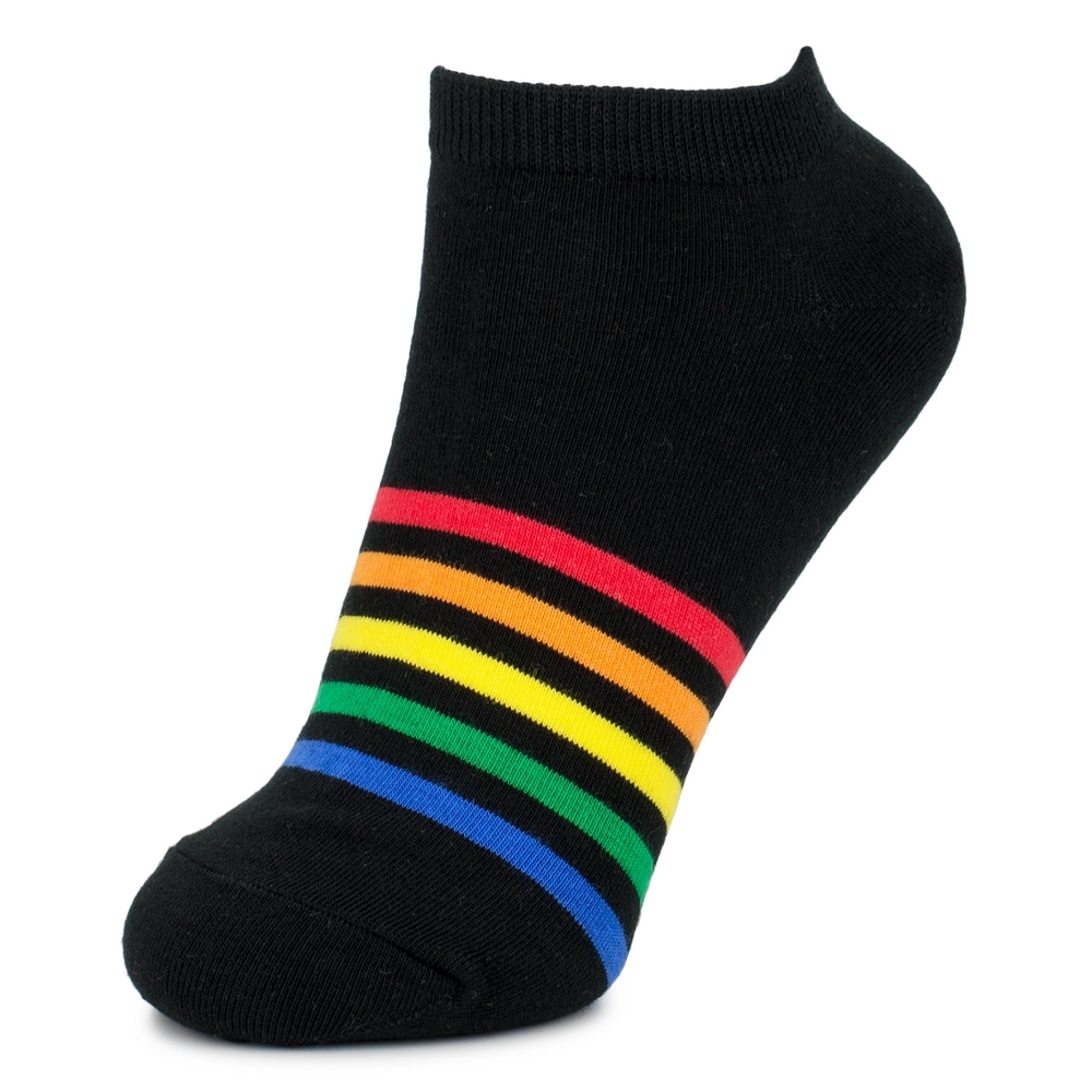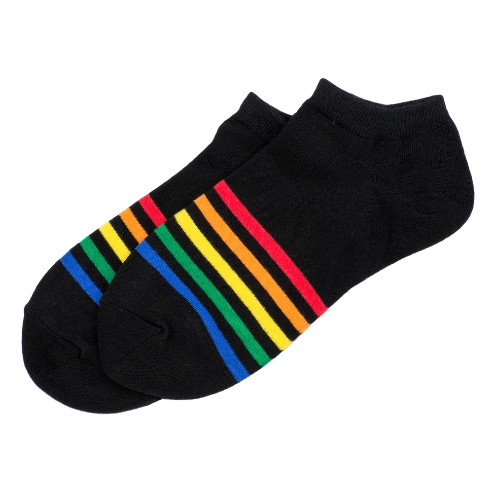 Socks cotton & spandex ankle rainbow stripe black