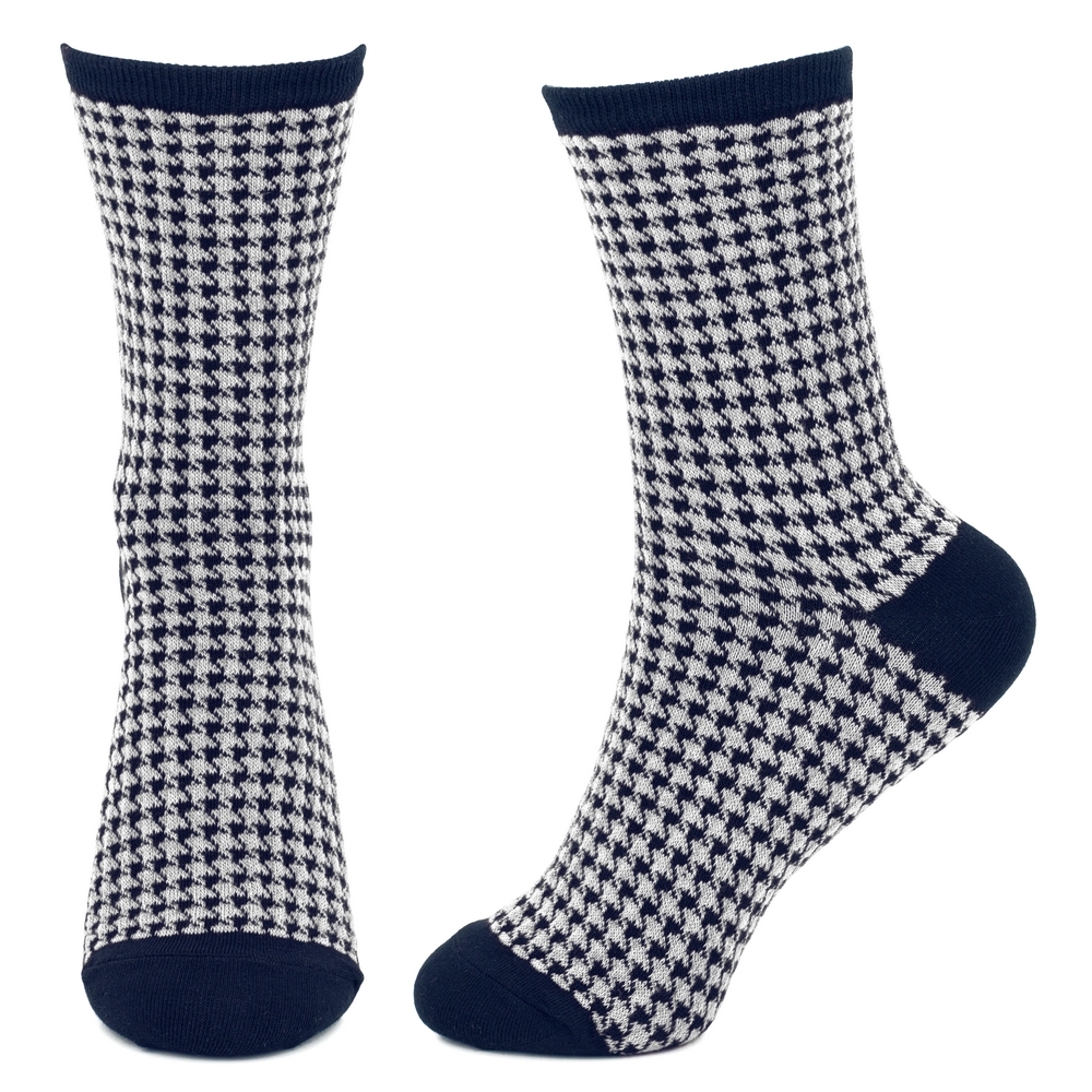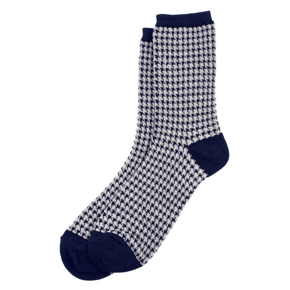 Socks cotton & spandex houndstooth navy blue