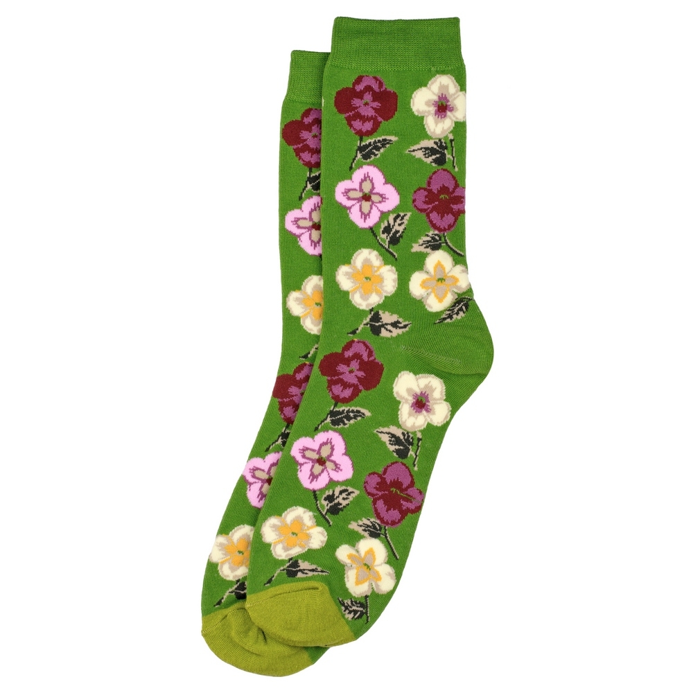 Bloom from the ground up! These green socks feature elegant climbing flowers stitched along the sidefresh, charming, and full of botanical energy.