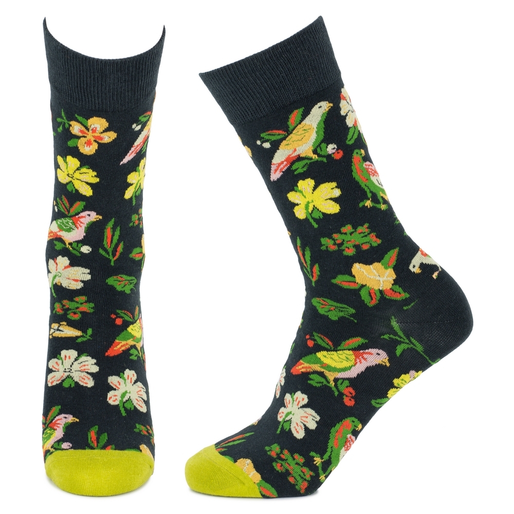 Be the first to review “Socks cotton & spandex tropical flowers & love birds black”