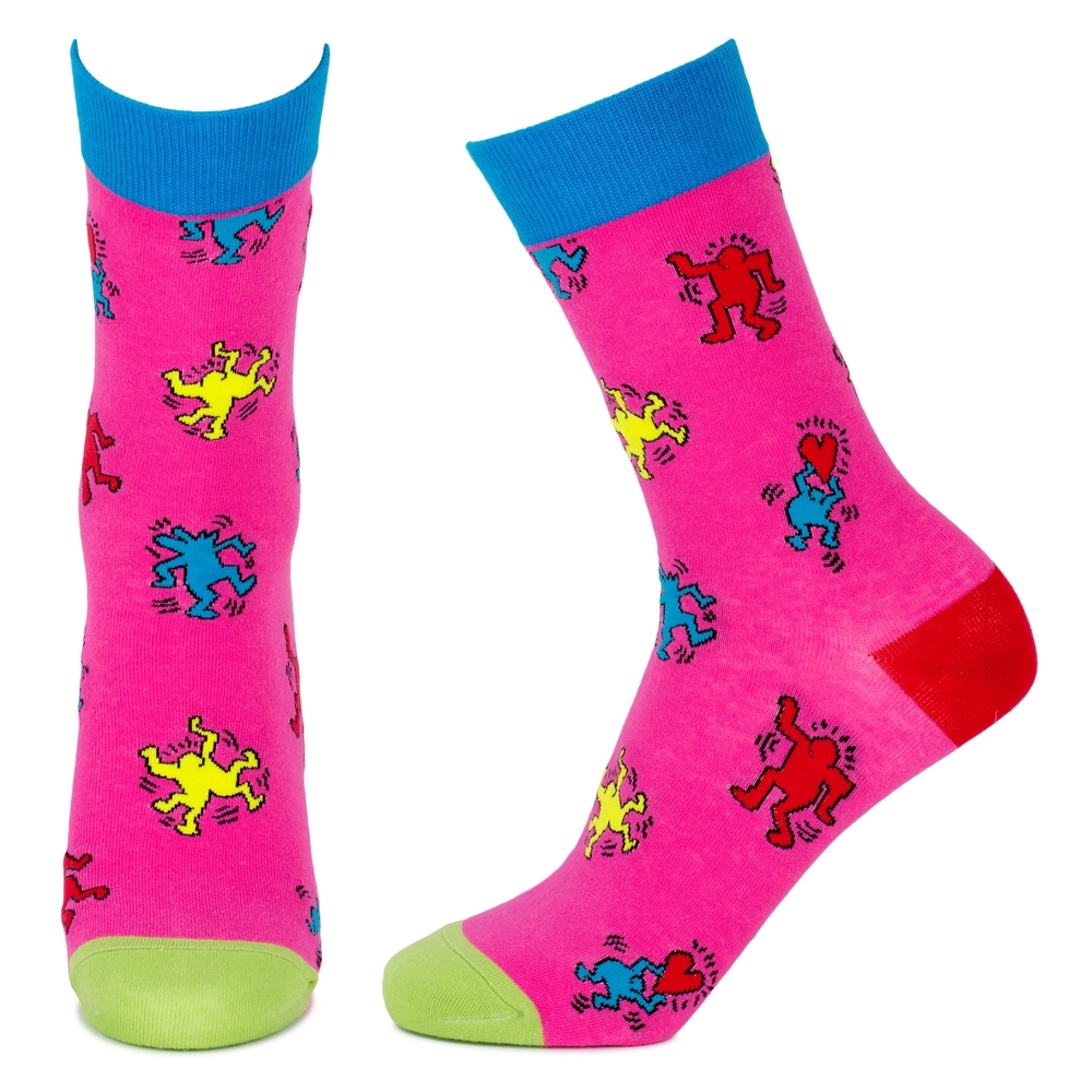 Celebrate the genius of one of the 20th century’s most iconic artists with these eye-catching Keith Haring-inspired pop art graffiti socks! Made with cotton and 15% spandex for maximum comfort and durability, these fit UK womens size 4-7 and are the perfect gift for the street fashion art lover in your life – or for yourself!