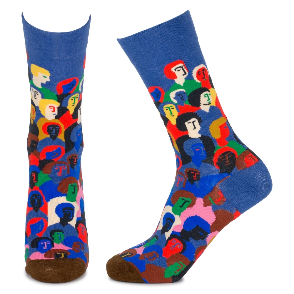The ‘Crowded People’ socks are a wearable narrative, a quiet observation of humanity captured in miniature.