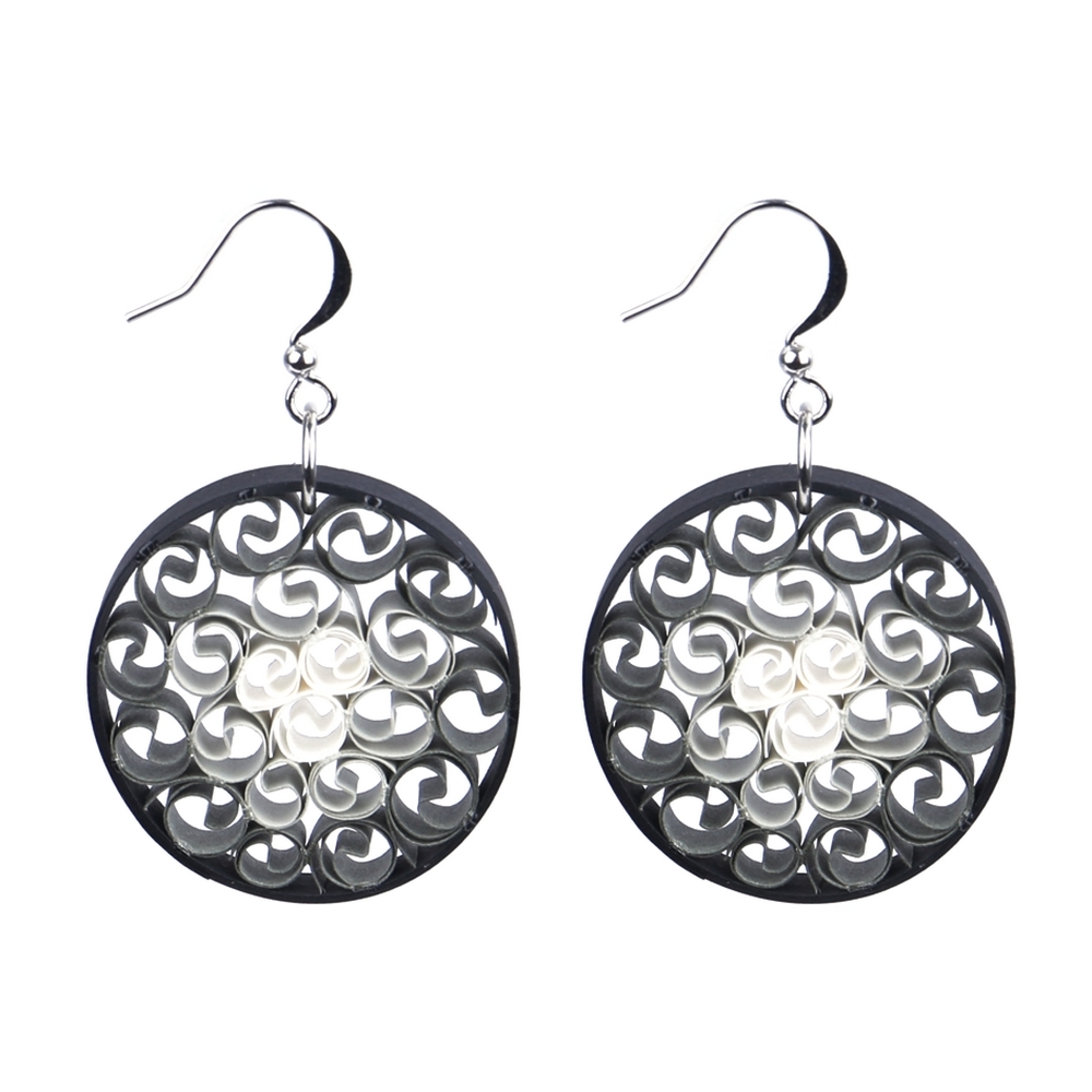 Drop earring paper ombre quill swirl circle black