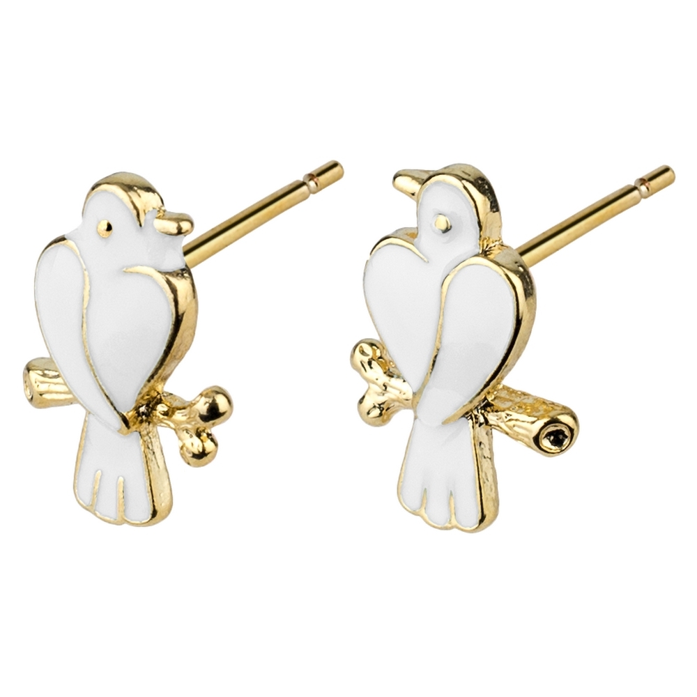 Stud earring enamel love birds white