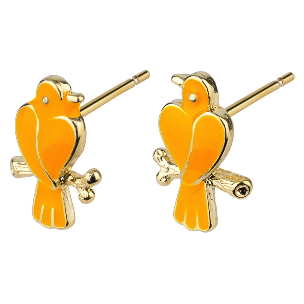 Stud earring enamel love birds orange