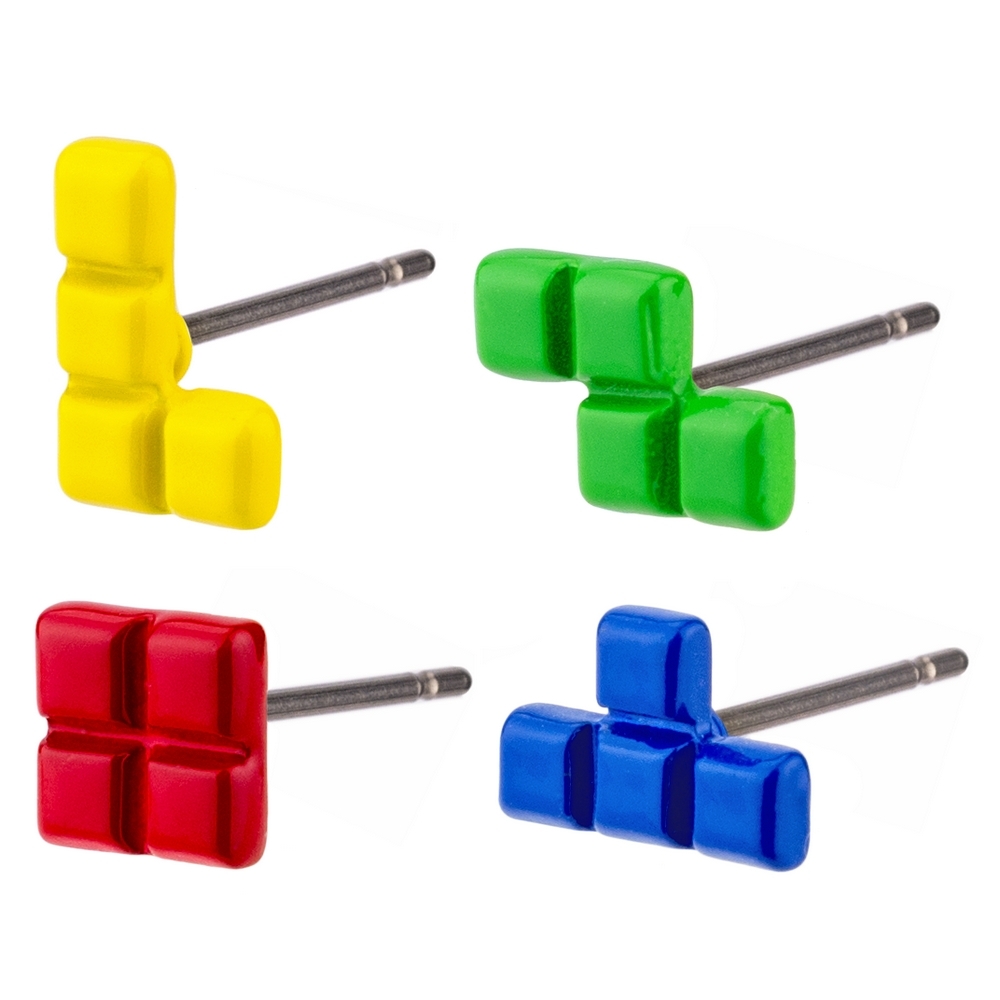 Stud earring enamel tetris inspired multicoloured