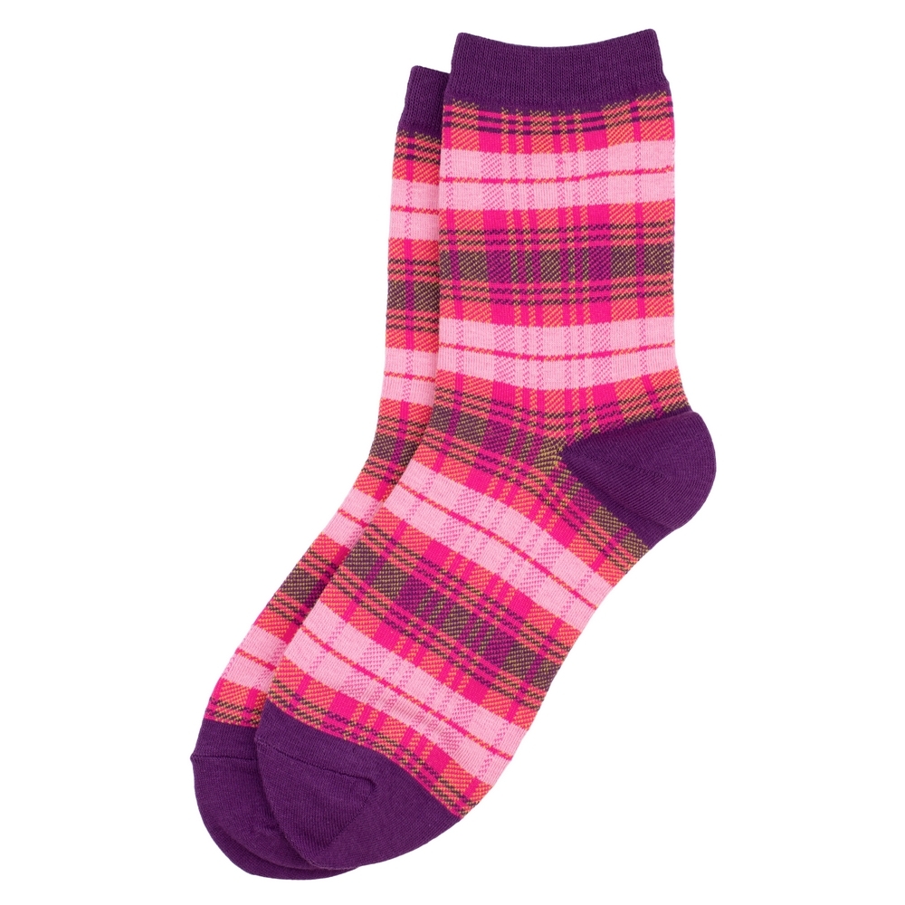 Socks cotton & spandex tartan mix pink