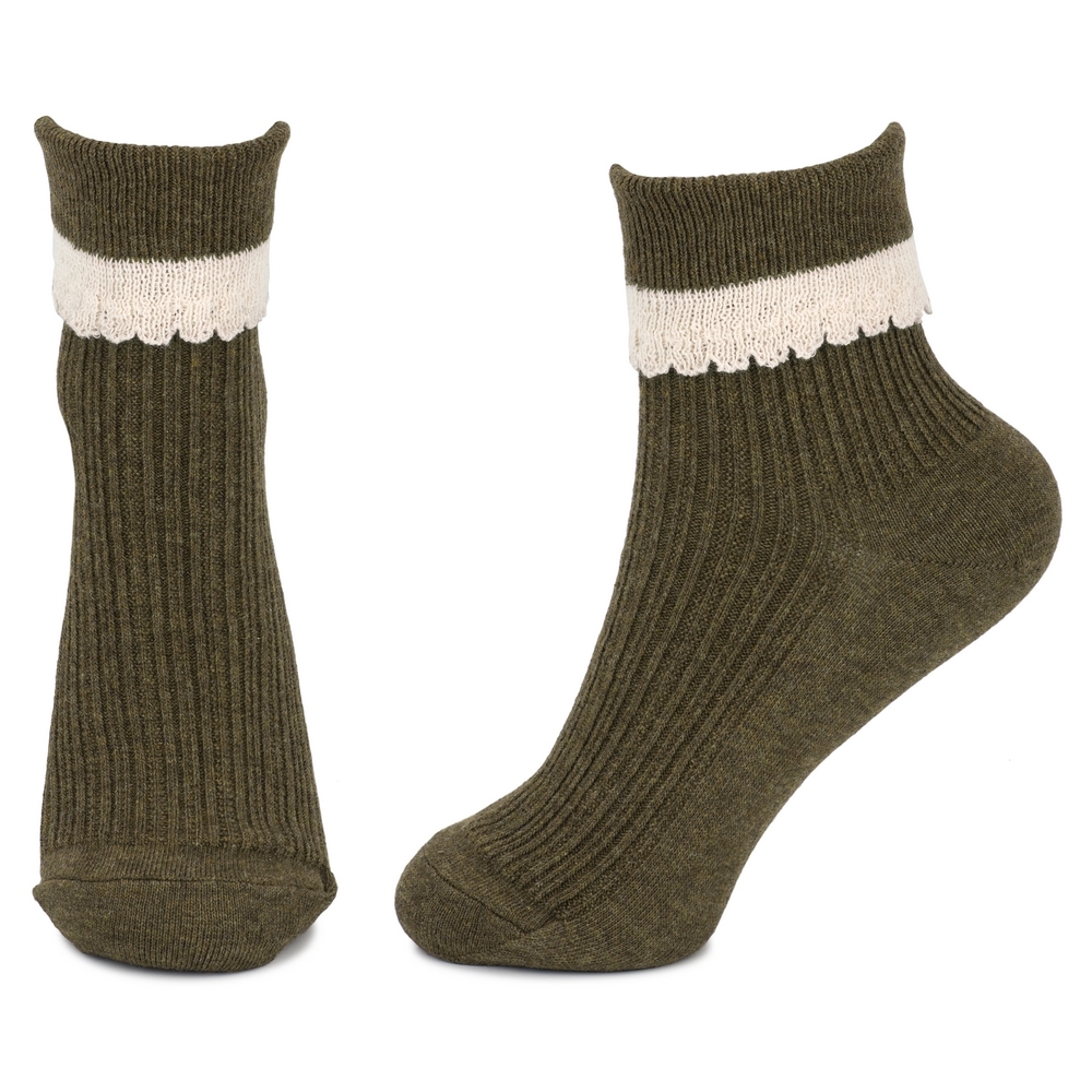 Socks cotton & spandex lace frill khaki green