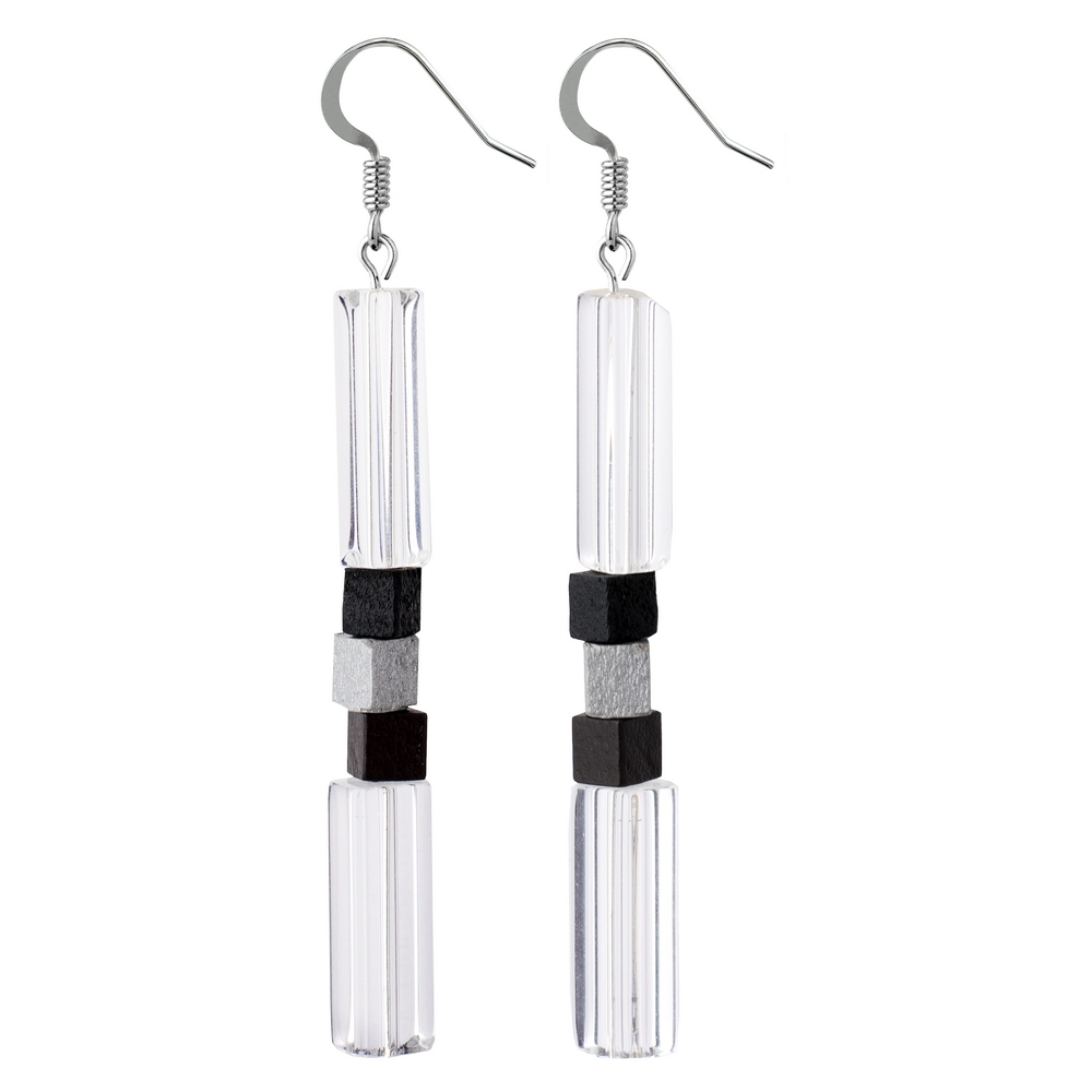 Drop Earring Manhattan Monochrome Made With Glass & Wood