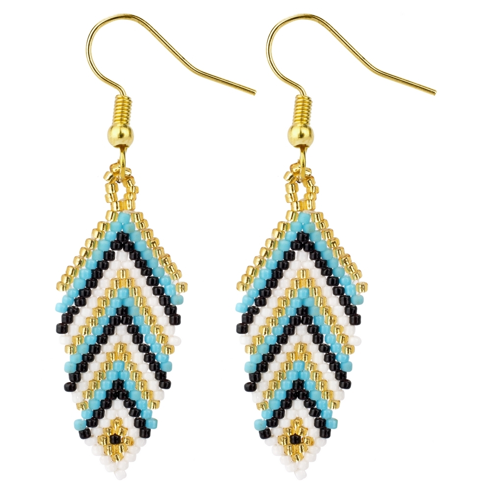 Drop earring glass beads feather turquoise & black
