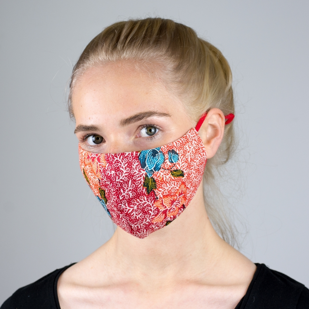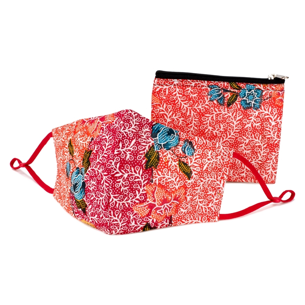 Face Mask With Matching Pouch Fine Batik Print Made With Cotton
