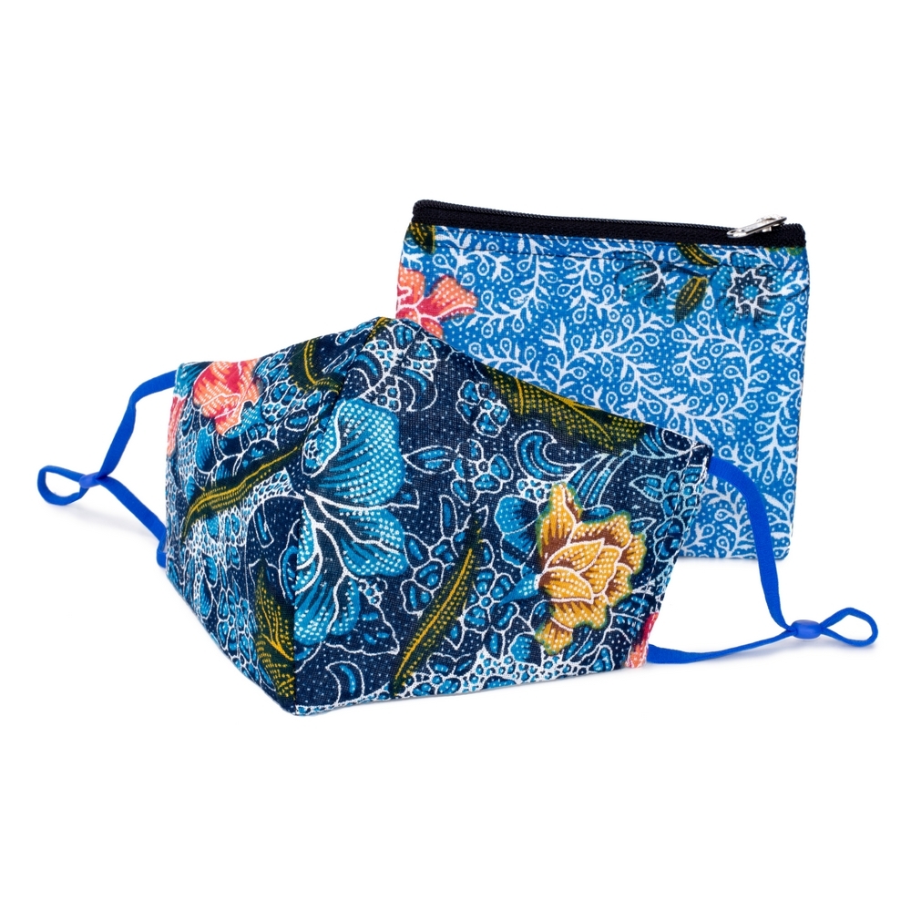 Face Mask With Matching Pouch Fine Batik Print Made With Cotton