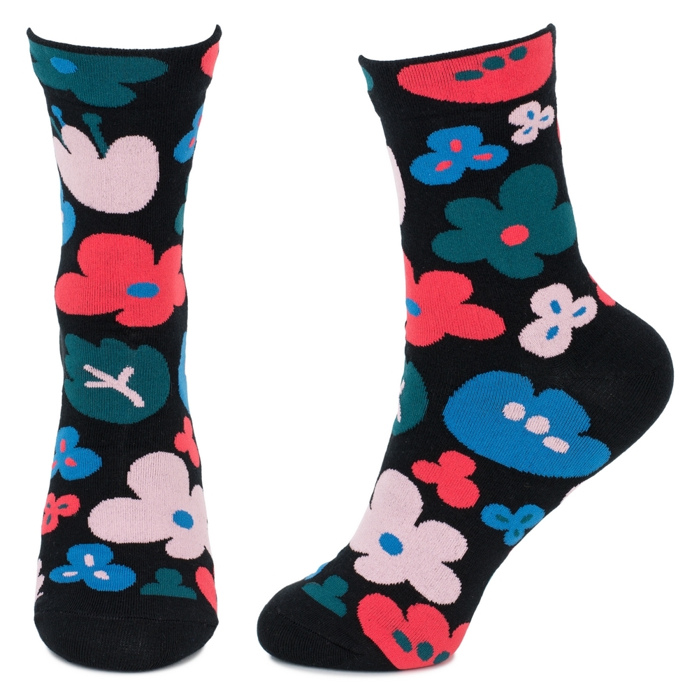 Be the first to review “Socks cotton & spandex bold block flower black”