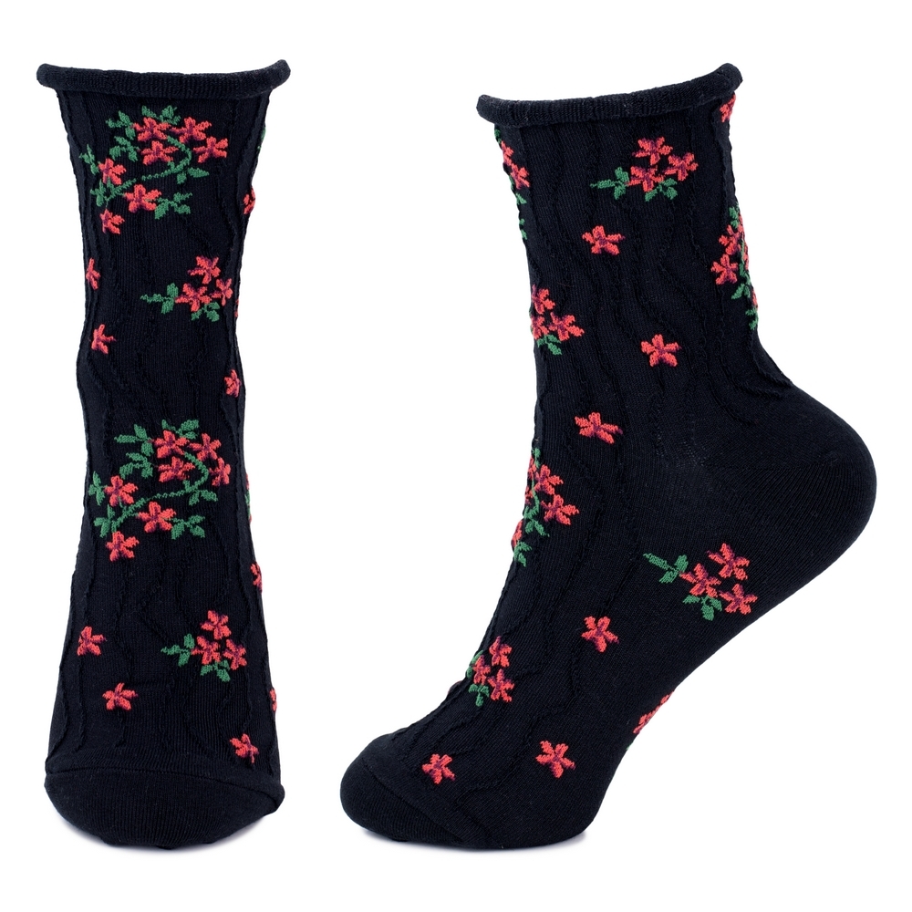 Socks cotton & spandex ruffle blossom black