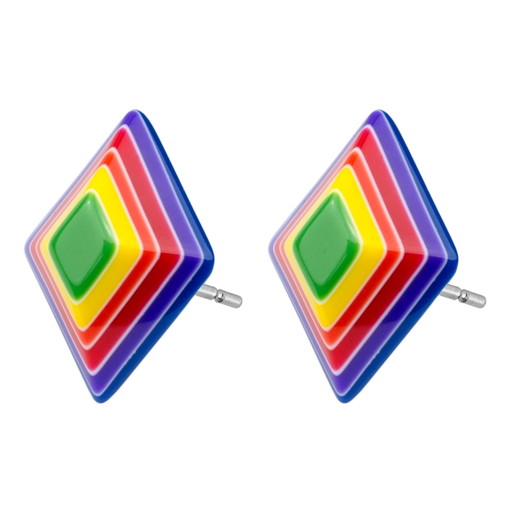 Stud Earring Rainbow Slice Diamond Made With Resin
