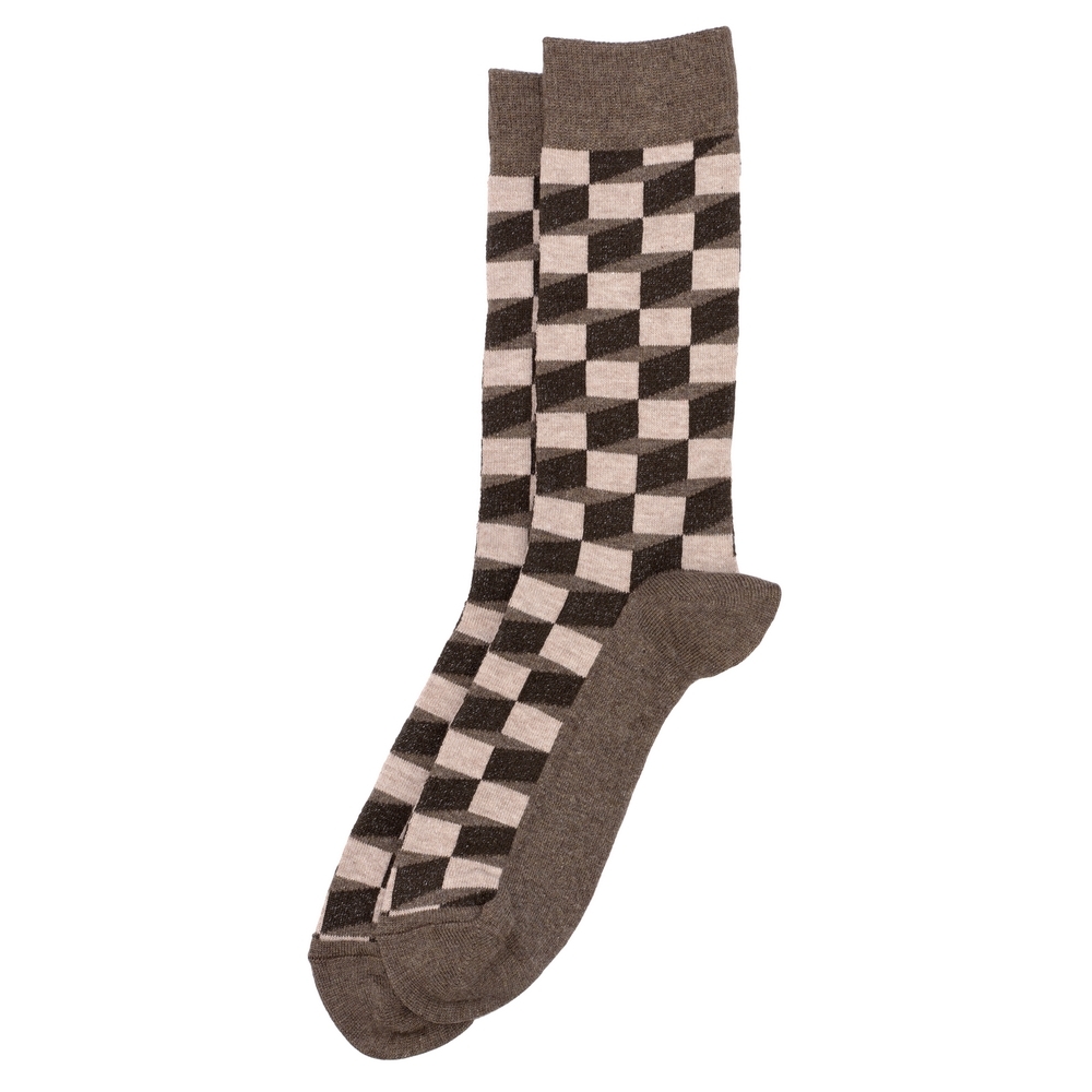 Socks cotton gents illusion cube brown